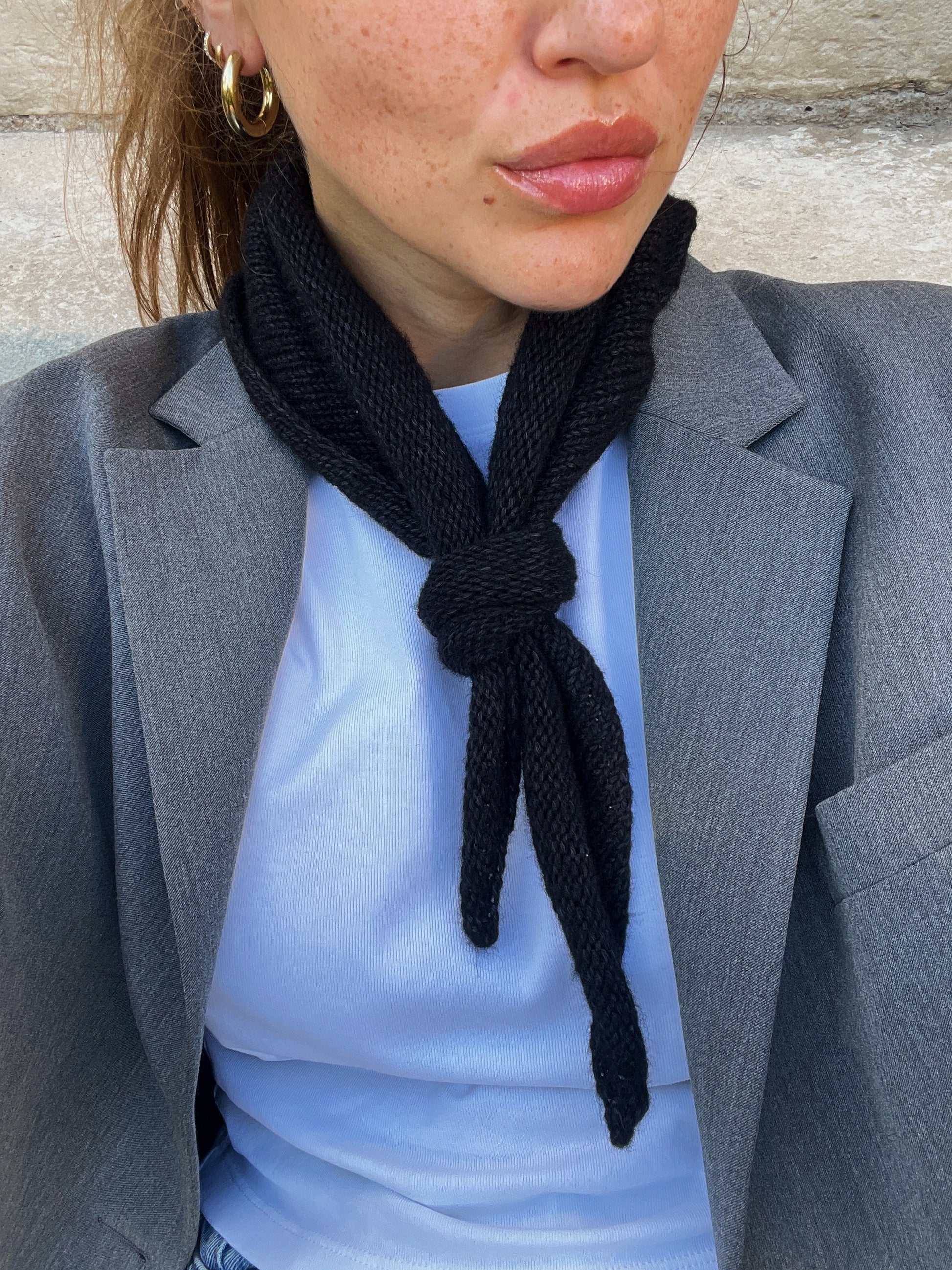 Ce foulard tricoté est personnalisable avec votre choix de couleurs.